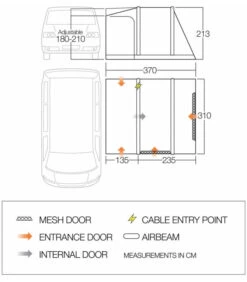 All of the Starline range of inflatable porch awnings are quick and simple to set-up. Each front window can be dropped to give a veranda effect or they can be unzipped to reveal fly screens for extra ventilation. There’s a doorway on either side, too. The individual inflation points give increased reliability and highly visible guy-ropes are fitted to add more stability. The Starline is available in three sizes: 260cm, 300cm and 390cm. All three have several sewn-in ringlets where an inner tent can be attached to provide extra sleeping space.
