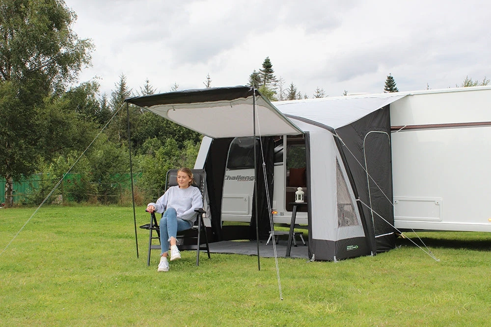After popular consumer demand, we have reintroduced the Porchlite collection, our bestselling range of lightweight small family porch awnings, which has been specifically designed to be easy to pitch, featuring two ergonomic size options, with width variations of 200cm or 260cm, each of which are available in Pole & Sleeve or Oxygen Air Frame variants. The excellent value premium Porchlite 200 Air inflatable porch awning is the most compact inflatable caravan awning on the market, making it an ideal extension of utility space for an individual, couples or small families. Designed with upper entry level features to appeal to caravanners craving practicality, reliability, simplicity, stylishness and ease of erection, to meet a budget; this is the perfect no-fuss touring solution for short weekends away that no caravan should be without!